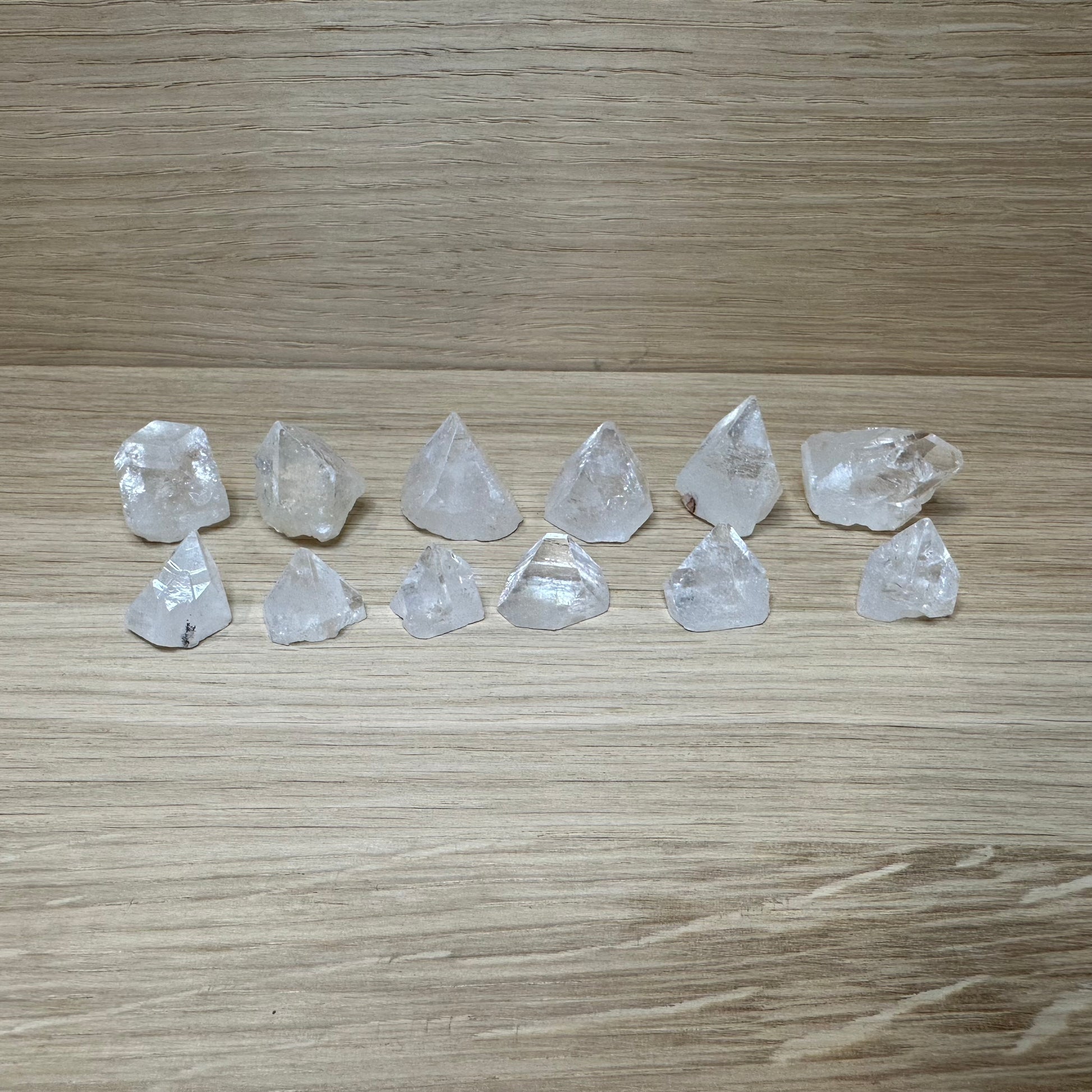 Disse små, rå Apophyllit-spidser er som lyskrystaller i miniatureformat. De naturligt klare spidser reflekterer lyset smukt og emmer af høj frekvens og spirituel klarhed. Perfekte til dig, der ønsker en krystal med løftende energi i et diskret, men kraftfuldt format.
