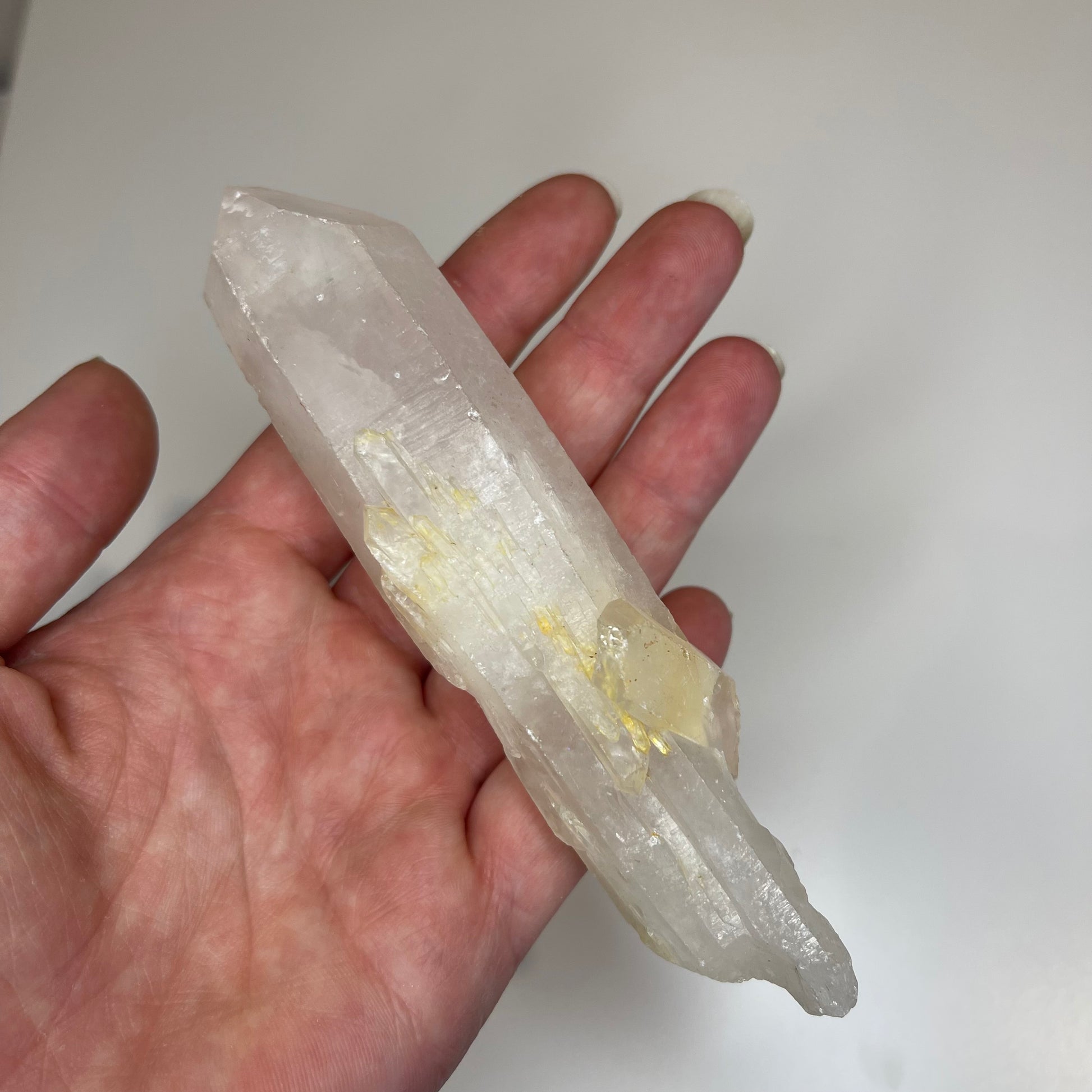Disse smukke Bjergkrystal spids er en af de mest alsidige og kraftfulde krystaller i krystallernes verden. Med sin klare og rene energi er Bjergkrystallen kendt som "mesterhealeren", og den arbejder på alle niveauer af væren – fysisk, mentalt og spirituelt. Punktet er naturligt formet eller let slebet for at fremhæve dets klare struktur og lysreflekterende skønhed, hvilket gør det til en energisk og visuelt betagende tilføjelse til ethvert rum.