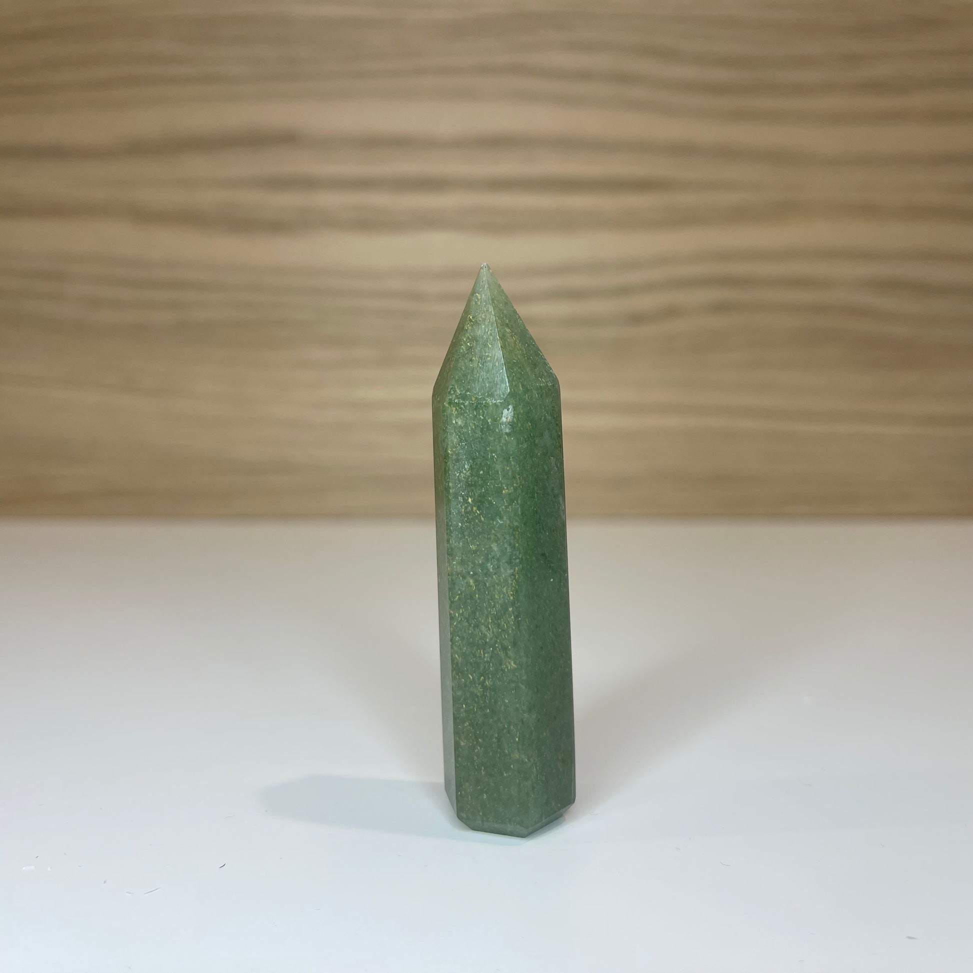 Bemærk: Grøn aventurin er et naturligt materiale, og hvert tårn vil variere lidt i farve, struktur og glans. Den friske grønne tone og lette glimmer gør hvert stykke helt unikt.