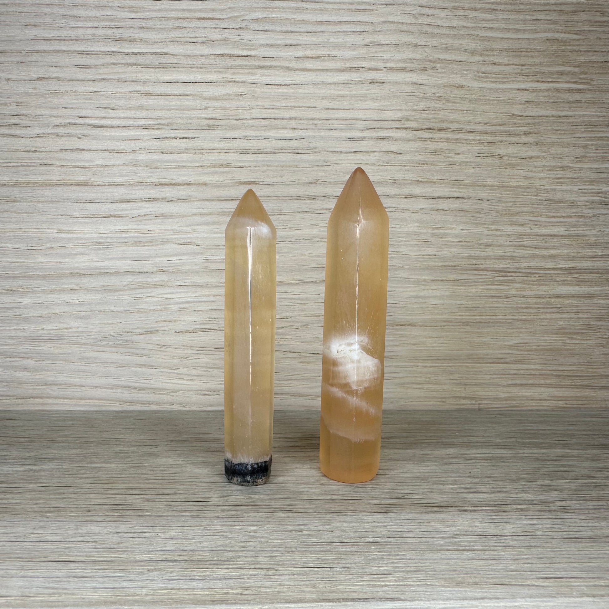 Bemærk: Honning Calcit er en naturlig krystal, og hvert tårn har sin egen unikke farvedybde, struktur og energi – hvilket gør hvert stykke helt særligt.