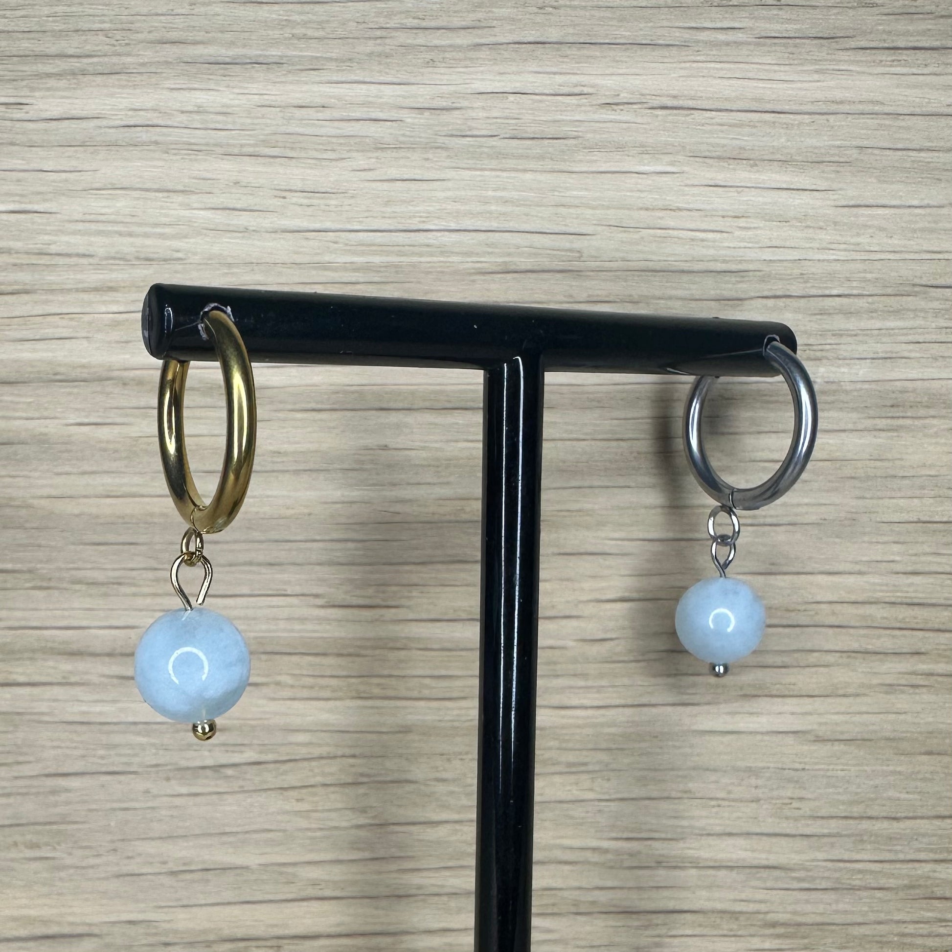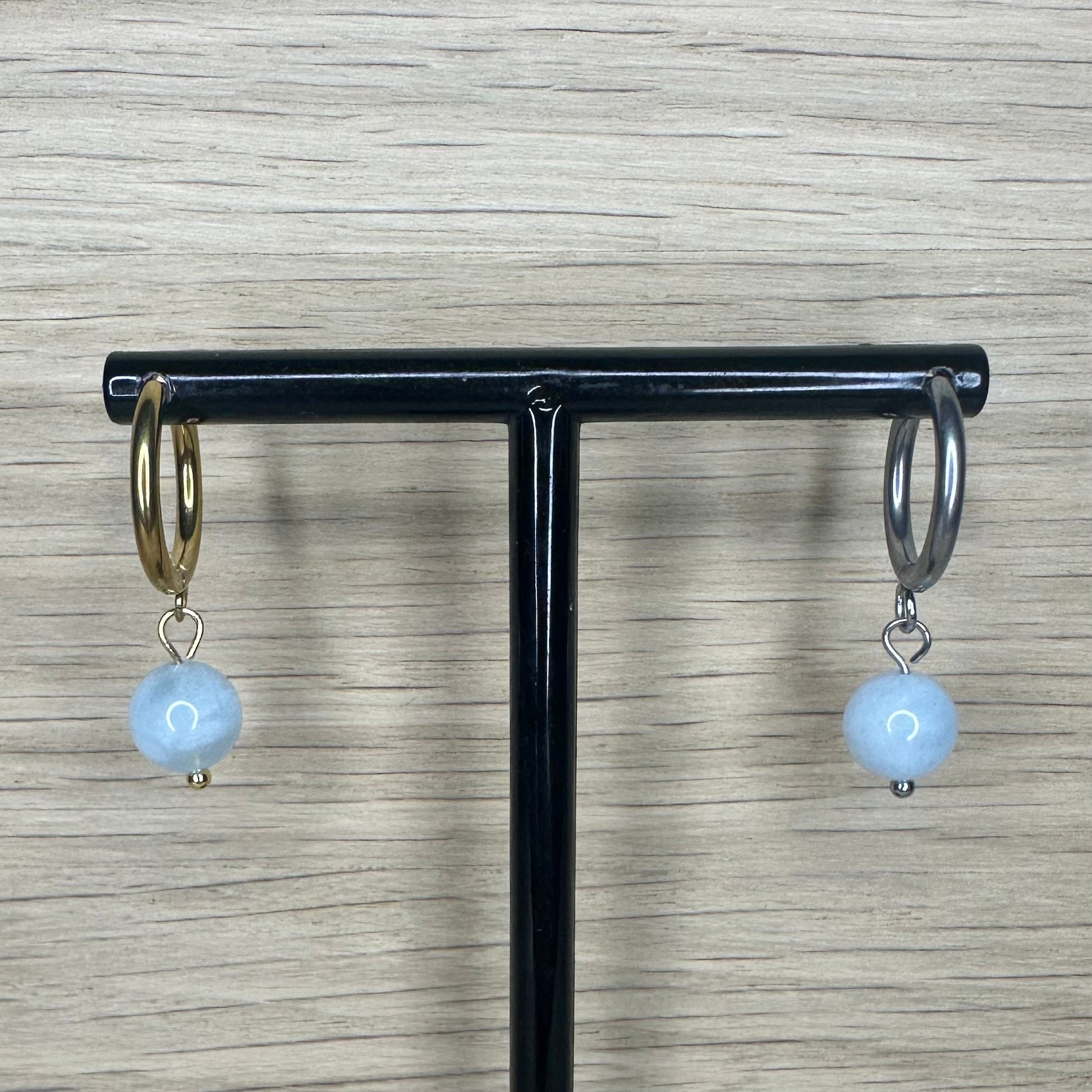 Disse håndlavede hoops er designet med én smuk, ægte akvamarin krystalperle på 8 mm. Den lyseblå nuance giver et frisk og feminint udtryk, der tilfører elegance til både hverdags- og festlooks.