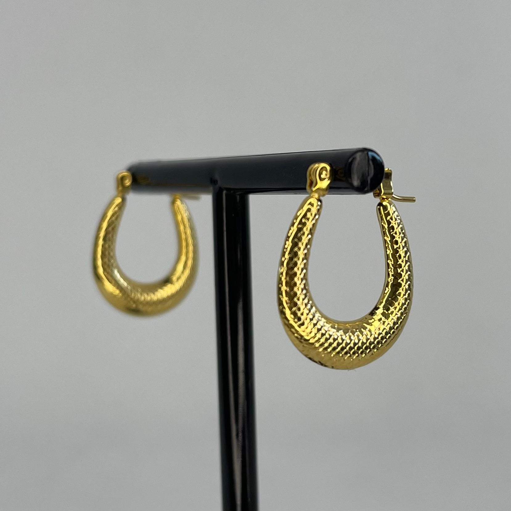 Kaya øreringene er lavet af rustfrit stål og PVD belagt med 18 karat guld.