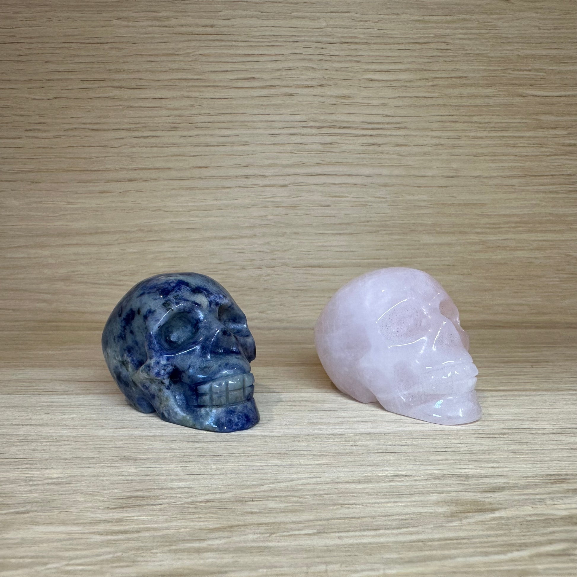 Dette dekorative kranie kombinerer symbolik, energi og æstetik. Kraniet symboliserer visdom, indsigt og forbindelse til højere bevidsthed, mens stenens naturlige energi forstærker intentionen bag udskæringen. Figuren fås i Sodalit, Rosa Kvarts, Yooperlite, Kiwi Jaspis og Granat med Arfvedsonit, hvor hver sten tilfører sin unikke energi og karakter.