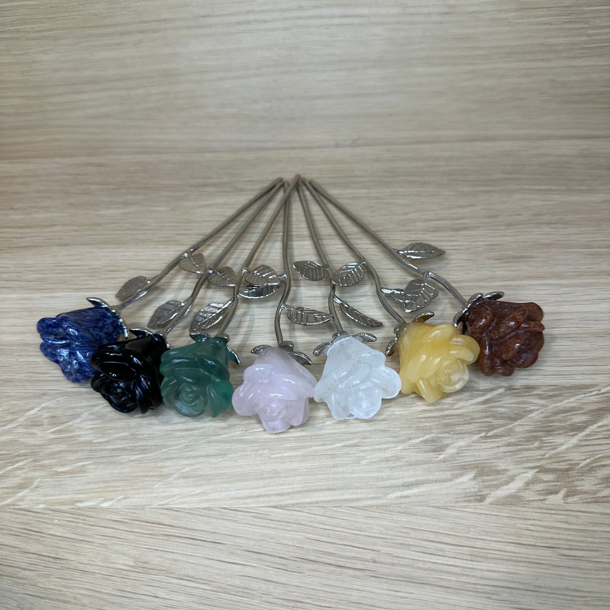 Bemærk: Krystalblomsterne er håndskårne af natursten. Derfor varierer farve, struktur og mønster – hver blomst er helt unik i både udseende og energi.