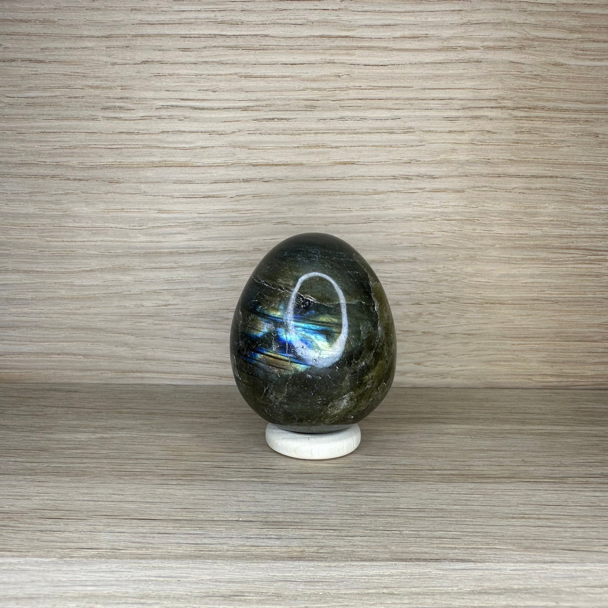 Bemærk: Labradorit er en natursten, og hvert æg har sit helt eget spil af farver, mønstre og energier – hvilket gør hvert stykke unikt og magisk.