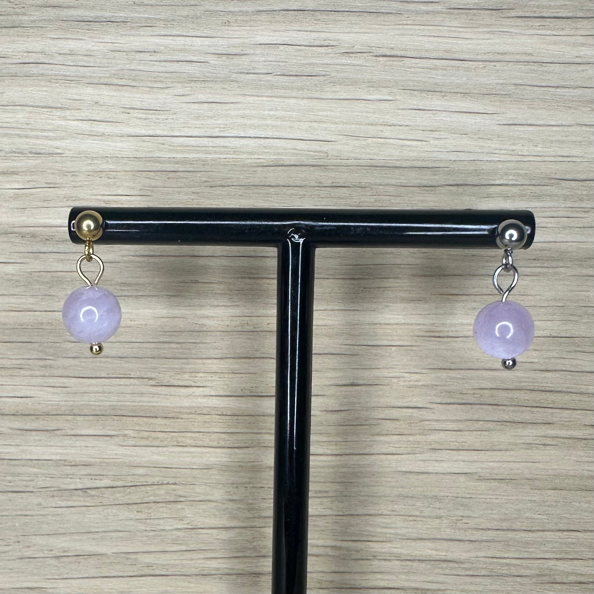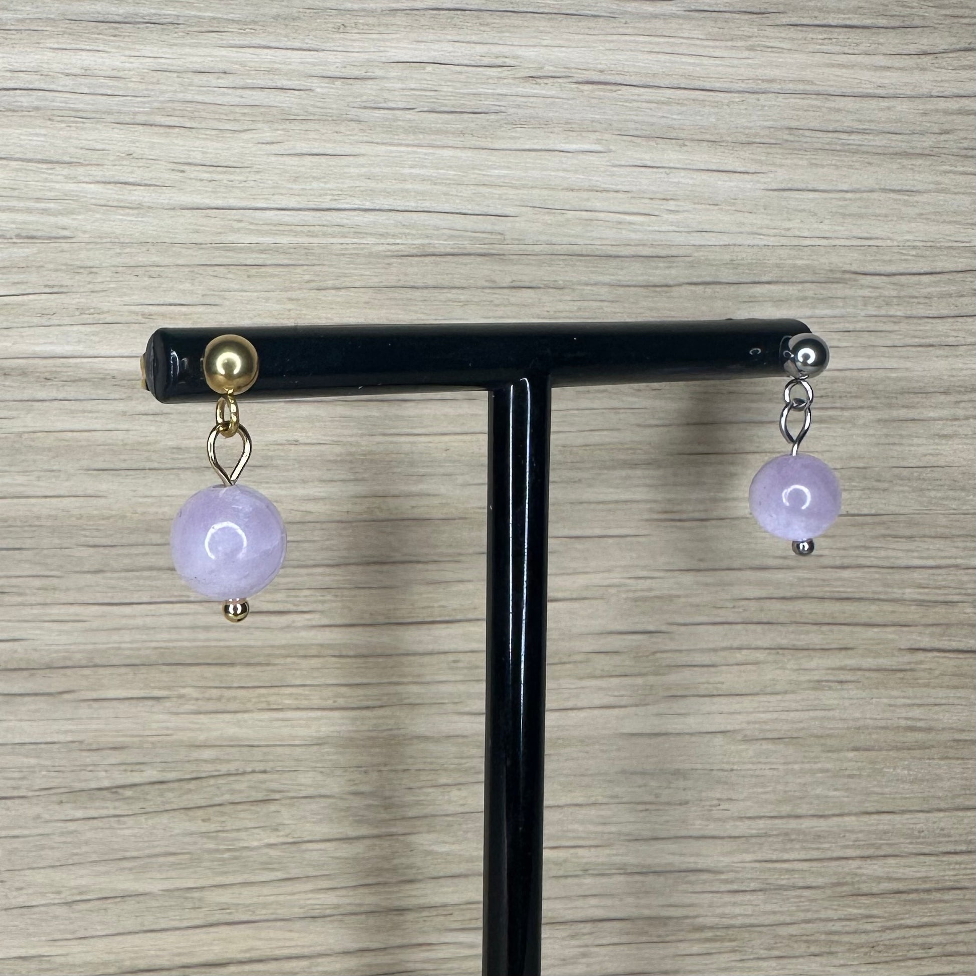 Disse håndlavede ørestikker er designet med én smuk, ægte kunzit krystalperle på 8 mm. Den lyserøde/lilla nuance giver et blidt og elegant udtryk, der passer både til hverdag og særlige anledninger.