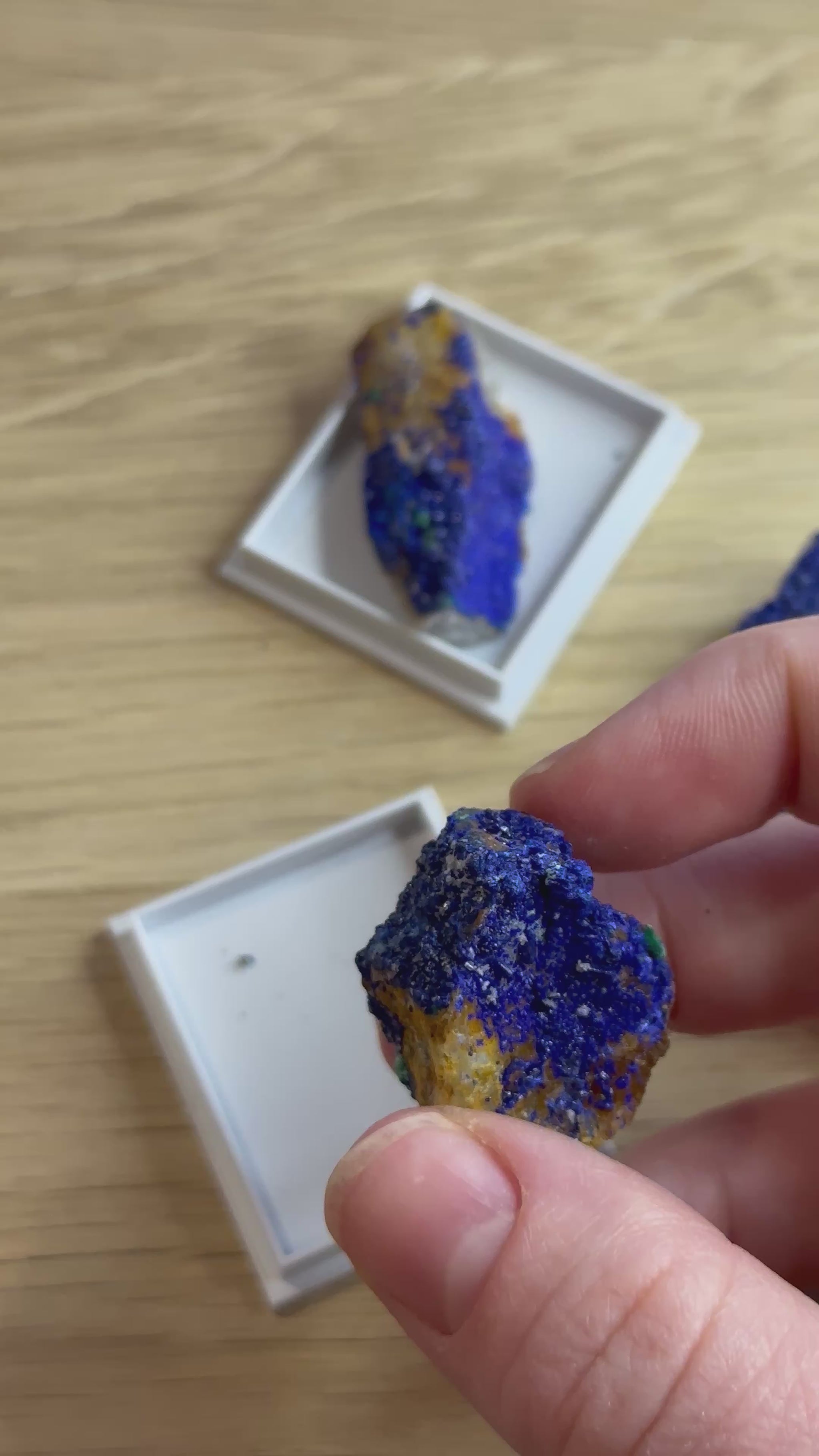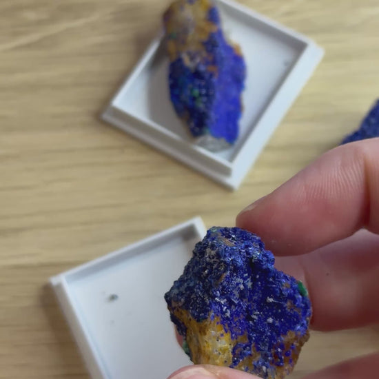 Bemærk: Azurit er en porøs sten og bør ikke udsættes for vand. Hvert stykke er unikt i farvetone, struktur og glans – men alle bærer den samme dybt intuitive og indsigtsfulde energi.