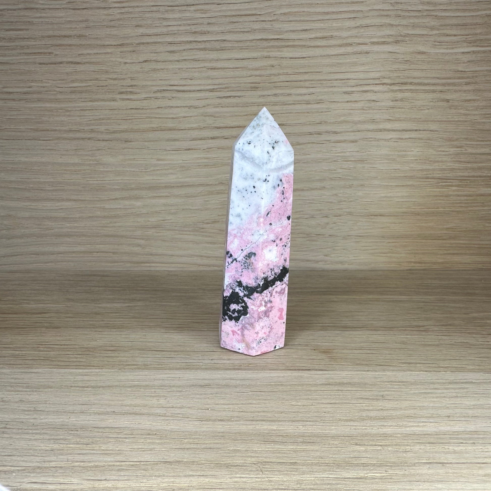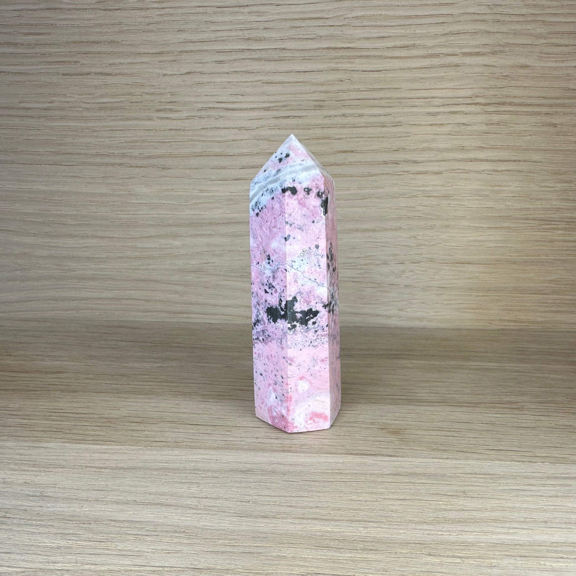 Tårnformens betydning: Den opadgående tårnform leder Rhodonitens blide men dybe energi ud i rummet og opad mod intention. Det gør krystallen særligt velegnet til healing, meditation og som daglig påmindelse om din indre styrke og dit åbne hjerte.
