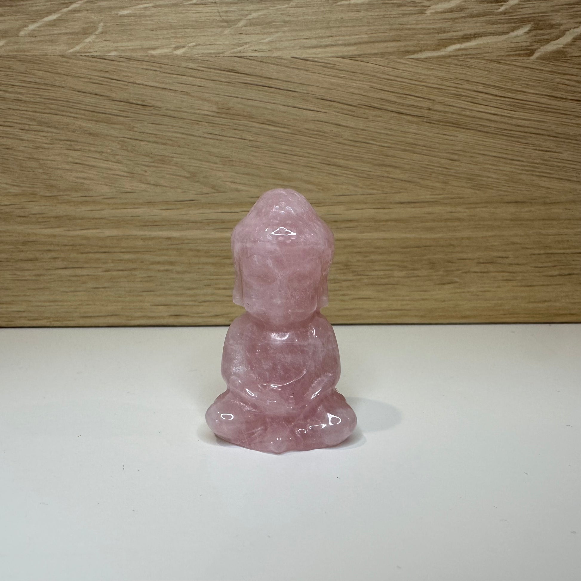 Buddha-symbolikken står for oplysning, indre fred og livets dybe indsigt. I Rosa Kvarts får denne visdom en ekstra dimension af medfølelse, venlighed og forbindelse til hjertet. Figuren minder dig om at møde dig selv og andre med blidhed og nærvær.