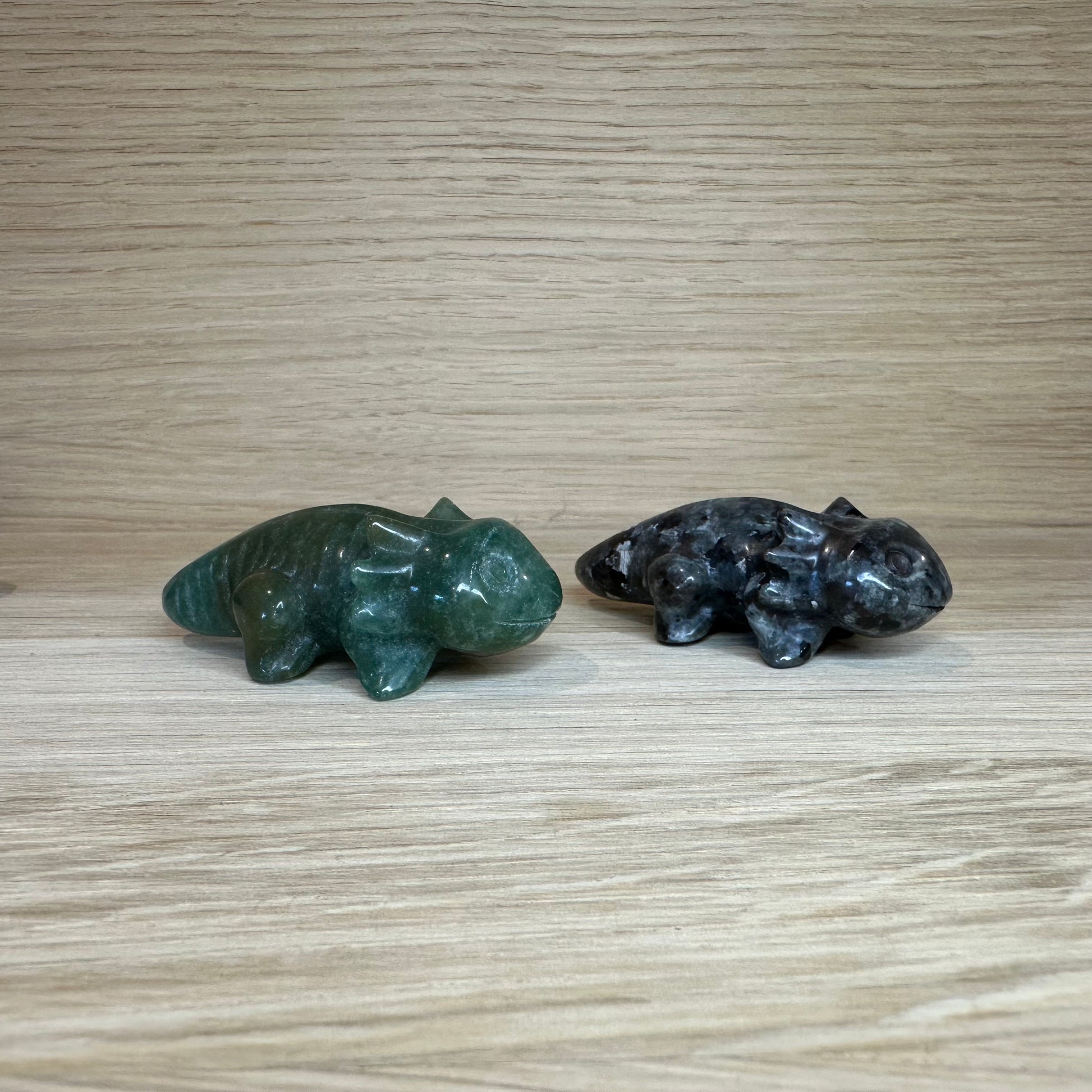 Bemærk: Stenene er natursten, og farve, glans og mønster varierer fra figur til figur. Hver salamander er derfor unik både visuelt og energetisk.