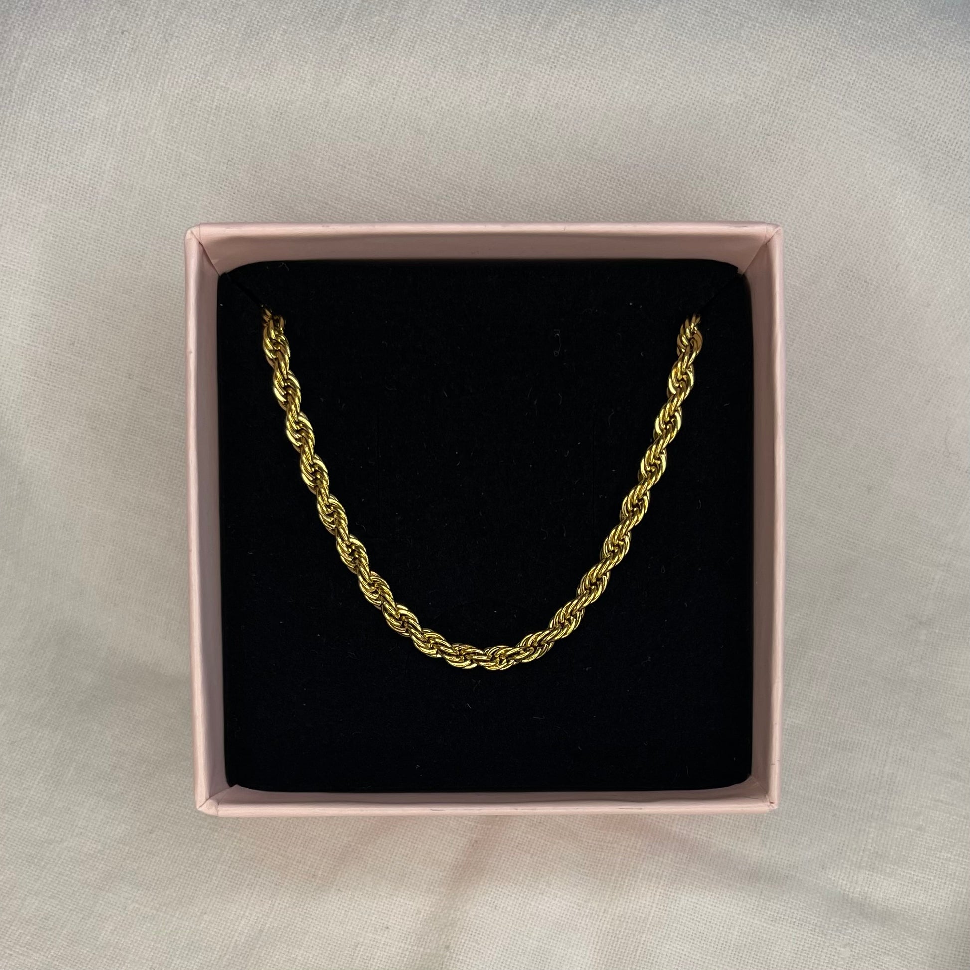 Silja halskæden er lavet af rustfrit stål og PVD belagt med 18 karat guld.