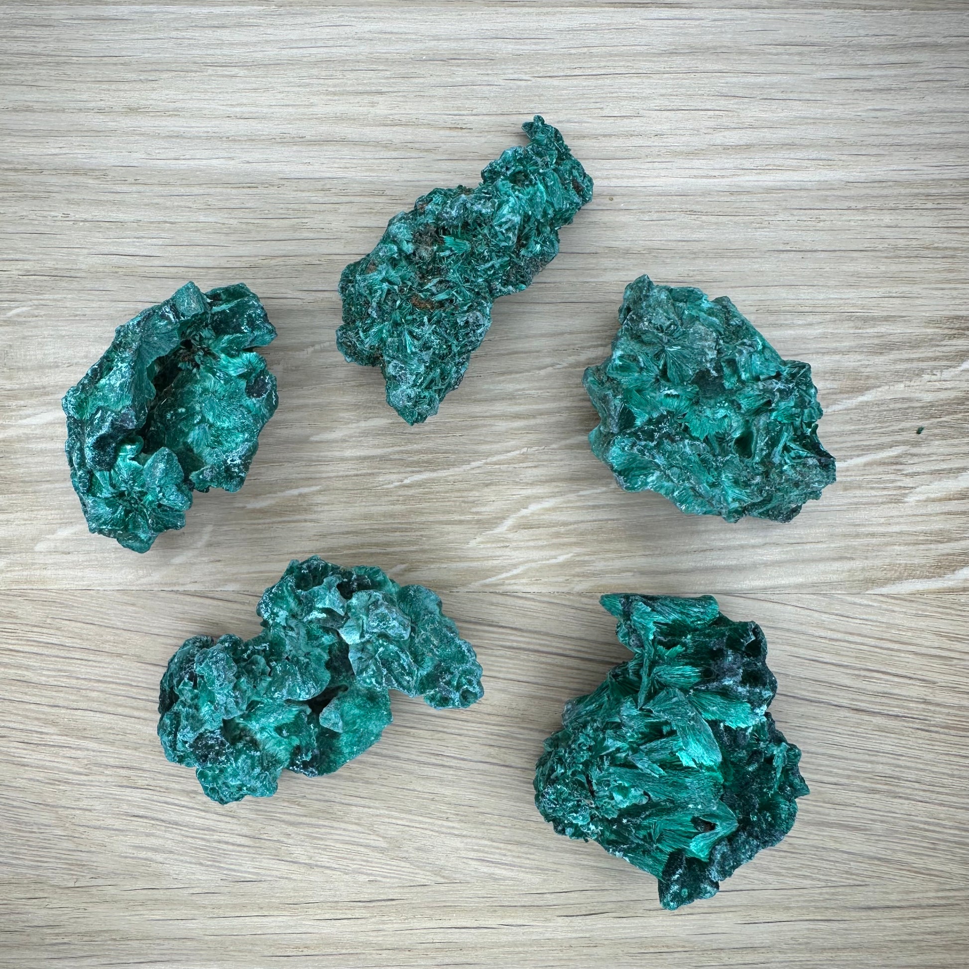 Disse rå stykker af Silke Malakit forener intensitet og skønhed i én og samme krystal. Med deres bølgende mønstre i dybe grønne nuancer og silkeblød struktur er de ikke bare visuelt dragende – de bærer også en stærk, transformerende energi. Hvert stykke vejer mellem 30 og 40 g og ligger perfekt i hånden til energiarbejde, meditation eller som et kraftfuldt element i din krystalsamling.