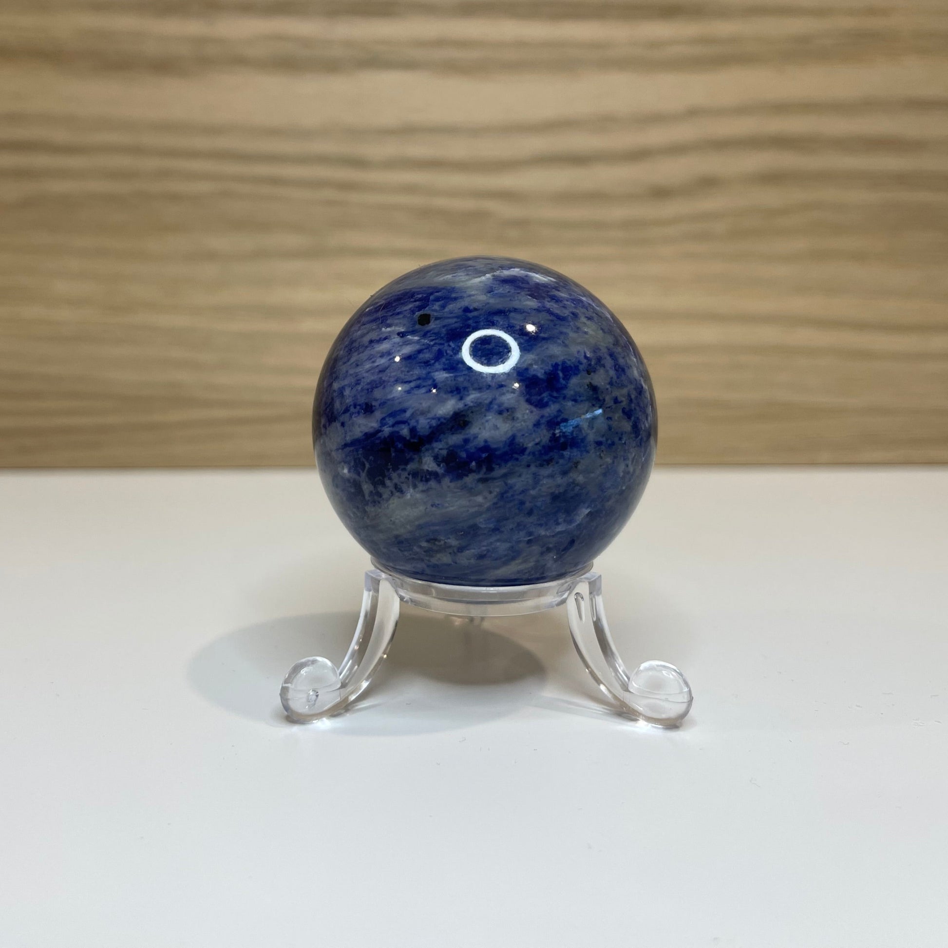 Blå farve og naturlig skønhed: Den dybblå farve i sodalit varierer i nuancer og skaber en visuel effekt, der beroliger og fremmer mental klarhed. Den naturlige struktur og de hvide ådringer i stenen gør hver kugle unik og fyldt med personlig energi.