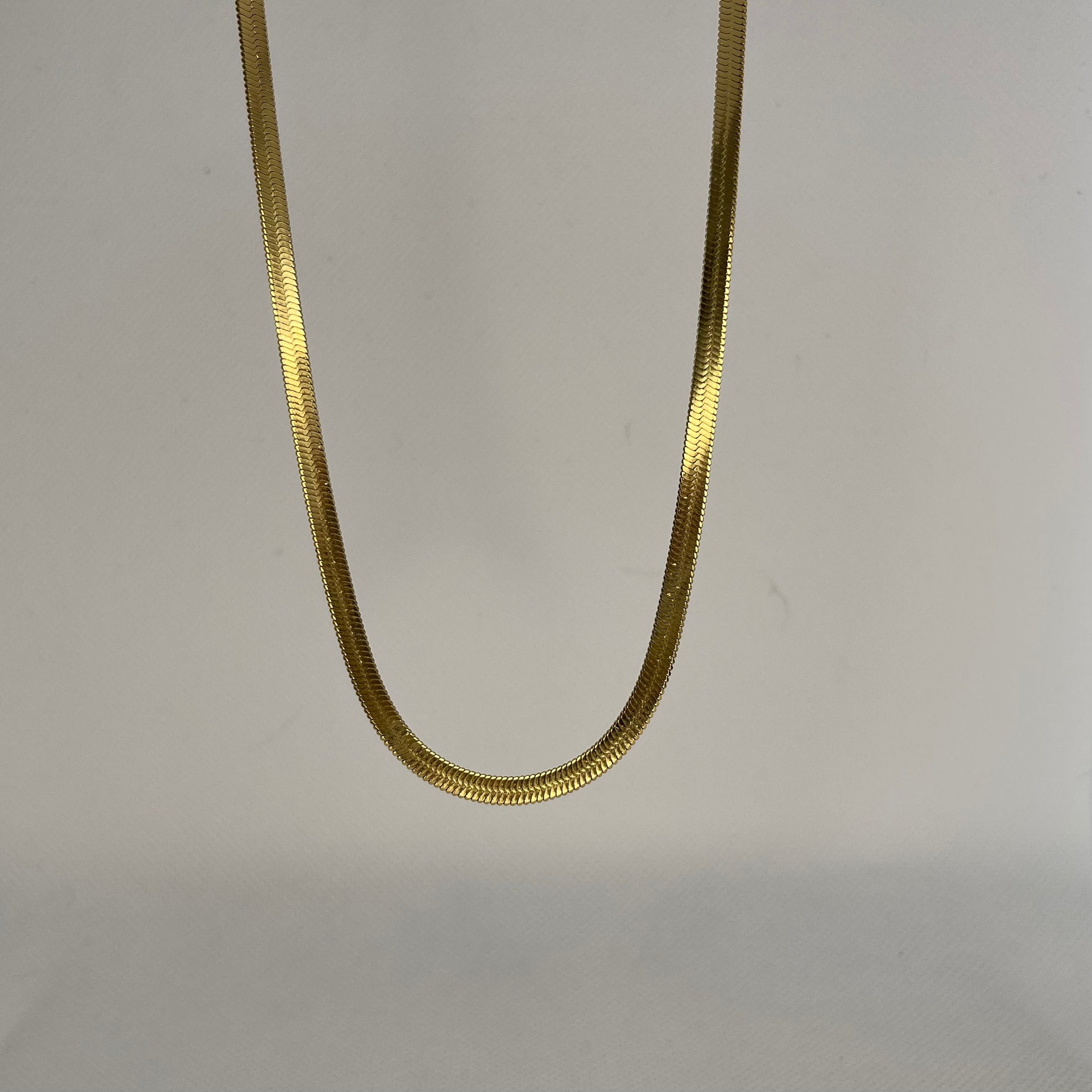 Sylvia halskæden er lavet af rustfrit stål og PVD belagt med 18 karat guld.
