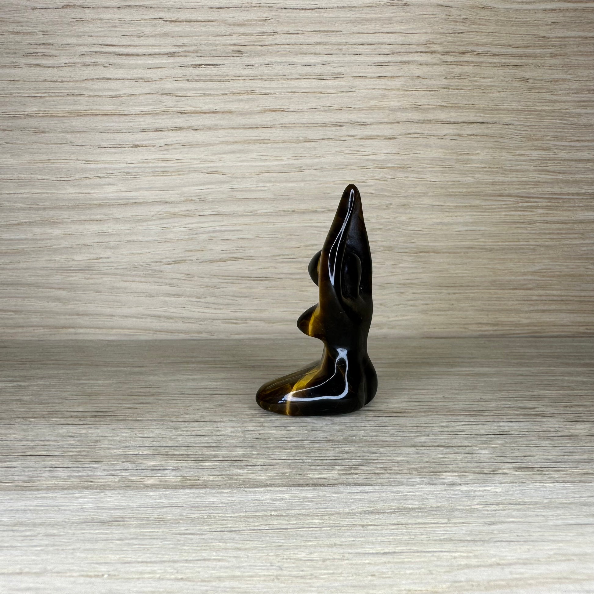 Bemærk: Tigerøje er en natursten, og derfor varierer farve, glans og mønster i hver figur. Det gør hvert stykke unikt – både visuelt og energetisk.