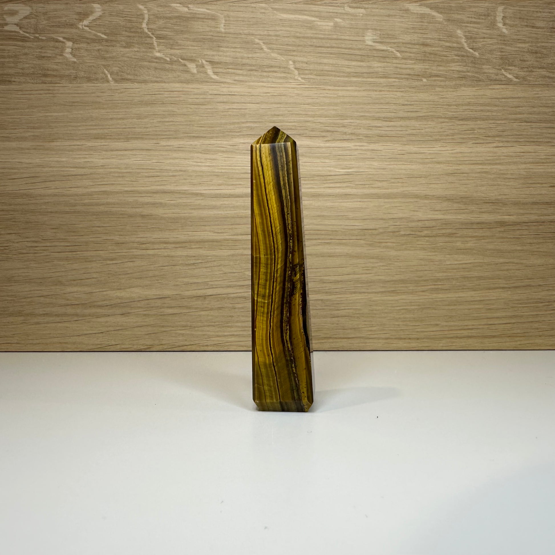 Dette kraftfulde Tigerøje Tårn er en sten af styrke, beskyttelse og indre klarhed. Med sine gyldenbrune striber og karakteristiske glans kombinerer tigerøje jordforbindelse med mental skarphed. Tårnformen leder energien opad og fokuserer dens egenskaber, hvilket gør det ideelt til beskyttelse, selvtillid og beslutningstagning.